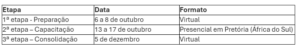Como cortesia, a AFROSAI-E oferecerá às participantes da etapa presencial almoço, coffee break e traslados entre o aeroporto e os hotéis oficiais em Pretória.